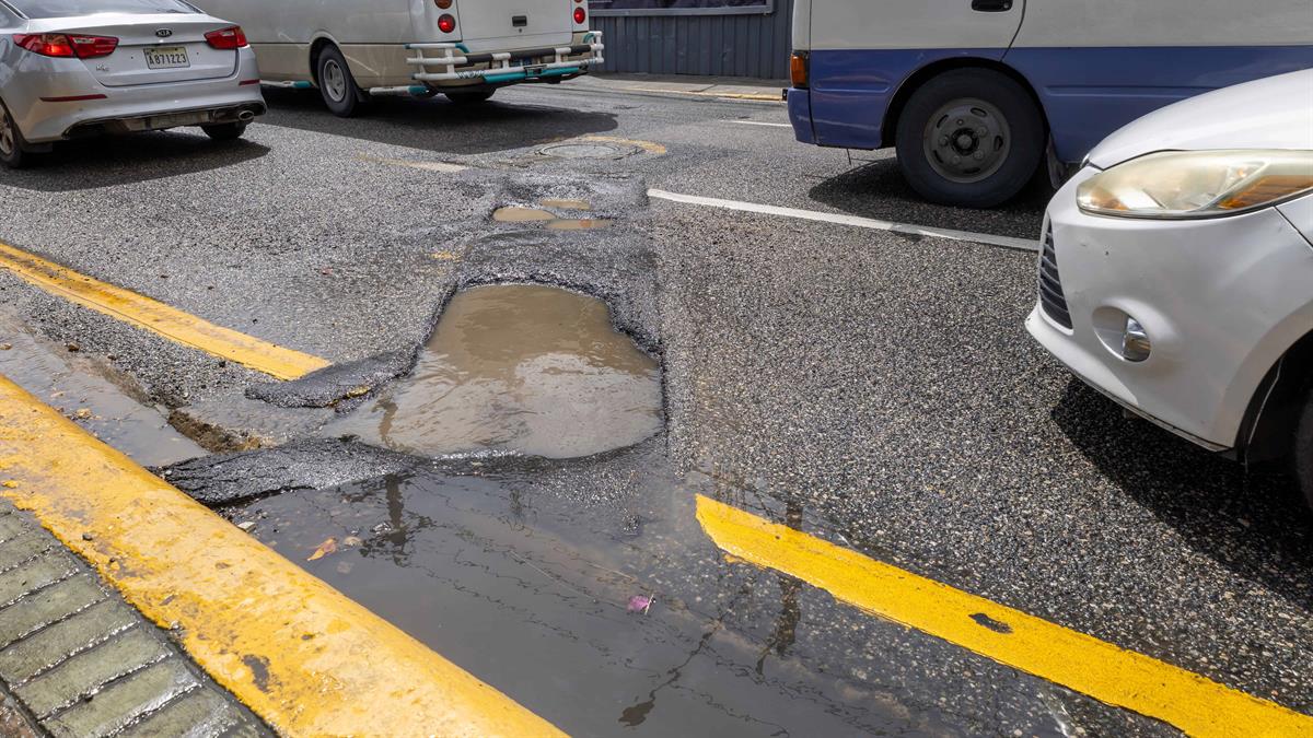 Aunque muchas vías habían sido reparadas, las intensas lluvias provocadas por el huracán Melissa reabrieron los hundimientos, generando un peligro tanto para conductores como para los transeúntes.