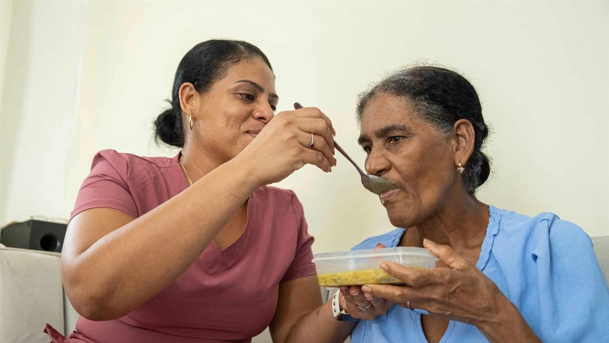 Sugey cuida a su madre con esmero y dedicación, una vocación que también extiende a otros envejecientes que atiende como parte del programa piloto de cuidados que impulsa la institución en los municipios de Santo Domingo Este y Azua de Compostela.