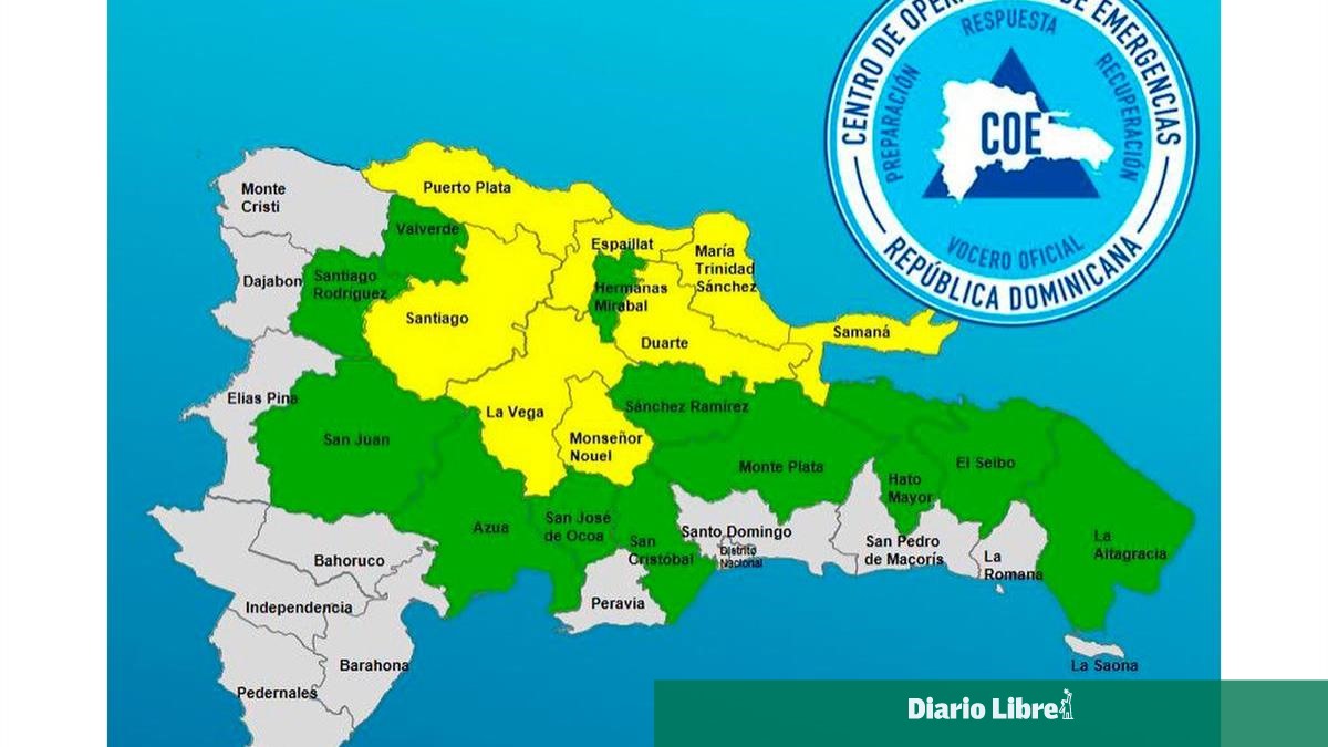 A través de un comunicado, el COE indicó que las ocho provincias en alerta amarilla son Espaillat, Puerto Plata, Santiago, La Vega, Monseñor Nouel, Duarte, Samaná y María Trinidad Sánchez.