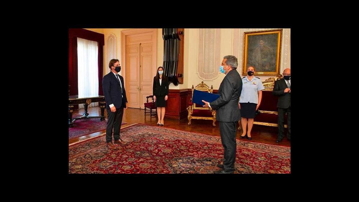 El embajador dominicano en la República Oriental del Uruguay, Fidel Santana, presentó credenciales ante el presidente Luis Lacalle Pou, en un acto solemne realizado en el Edificio Artigas, sede del gobierno de esa nación.