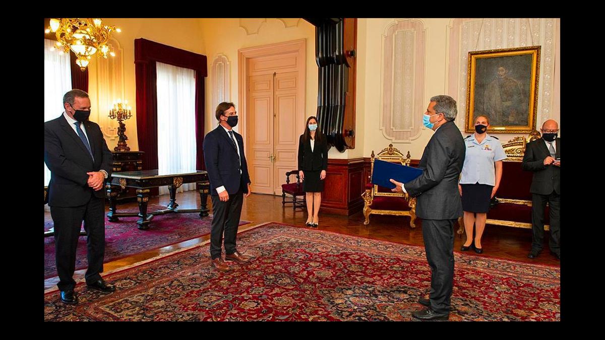 El embajador dominicano en Uruguay, Fidel Santana, presentó sus credenciales ante el presidente Luis Lacalle Pou, en un acto realizado en el Edificio Artigas, sede del gobierno uruguayo.