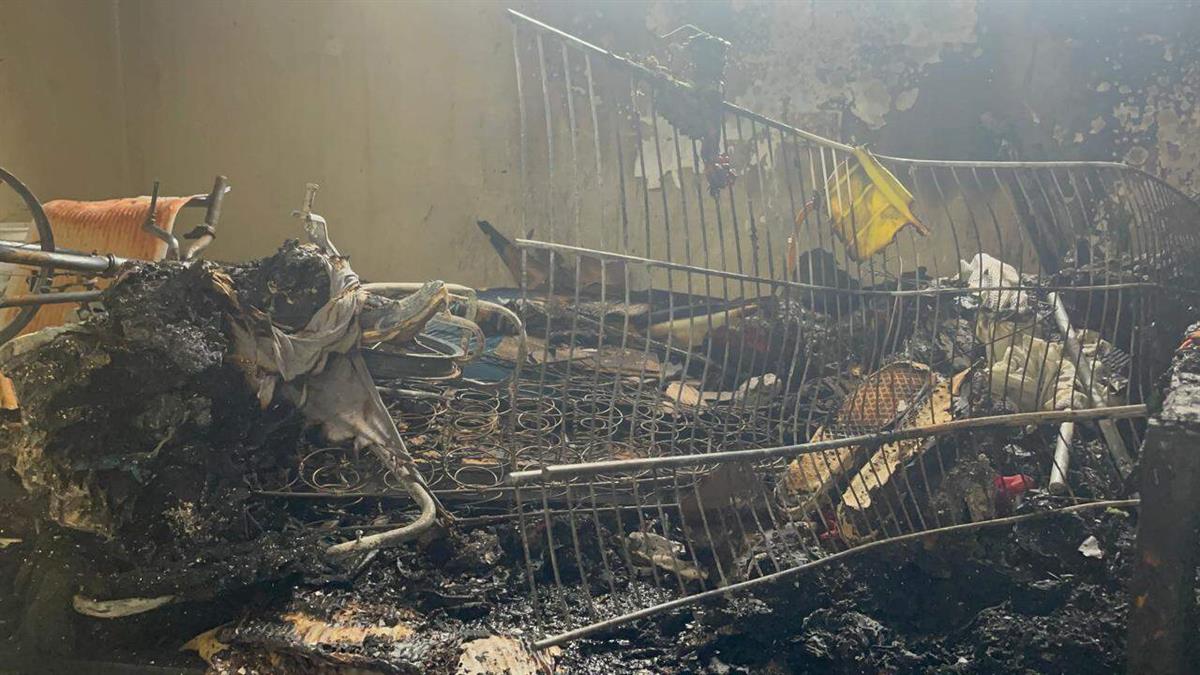 El incendio, que se sospecha fue causado por un abanico, provocó lesiones de consideración en los menores y consumió por completo los enseres del hogar.