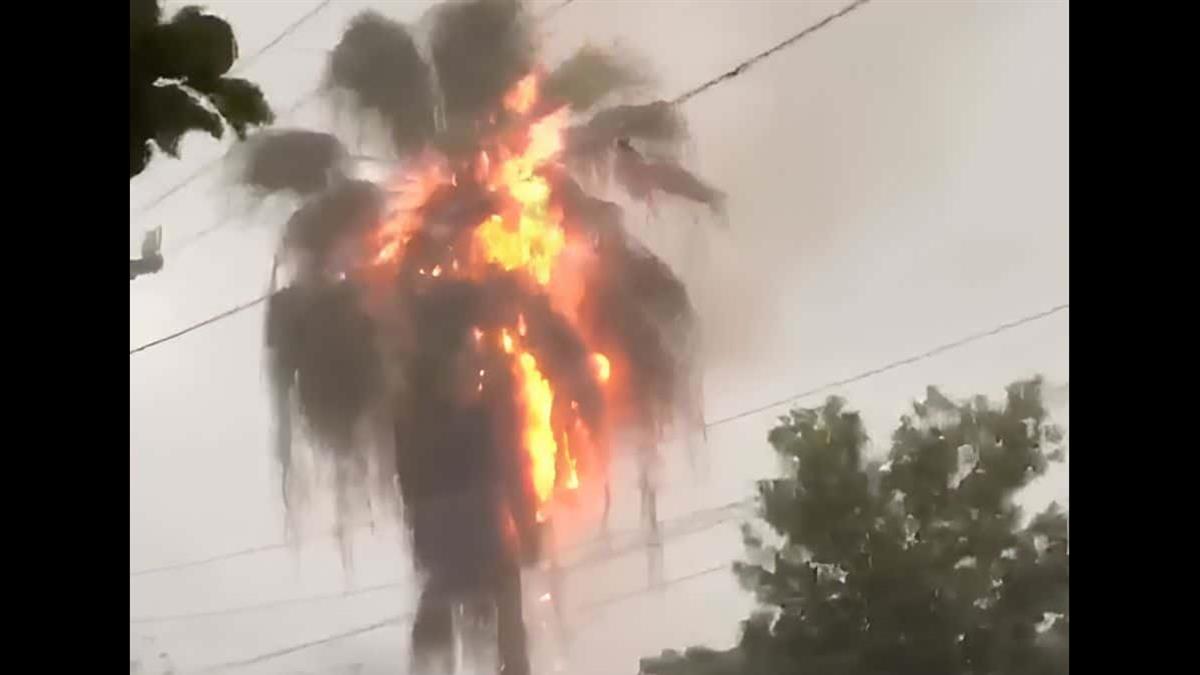 Rayo impacta palmera, la incendia y una parte en llamas cae sobre una casa, provocando un siniestro