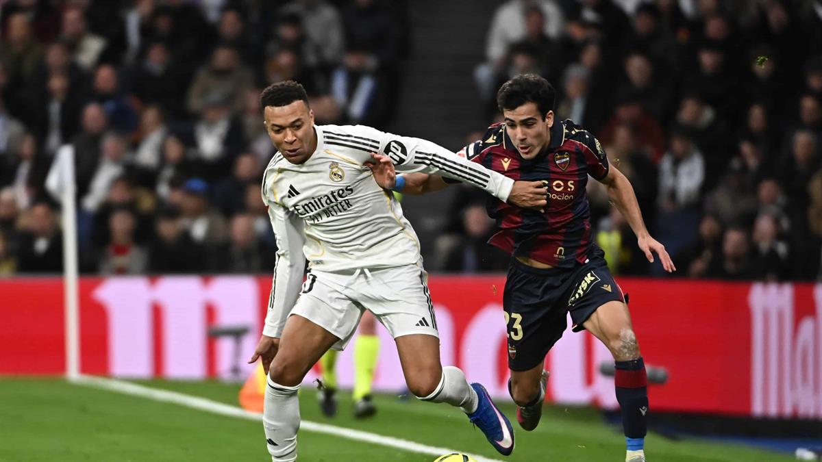 Kylian Mbappé (58') adelantó a los blancos con un gol de penal que el propio atacante francés provocó tras ser derribado por el central del Levante Adrián de la Fuente y Raúl Asencio (65') sentenció con un tanto de cabeza tras un córner.