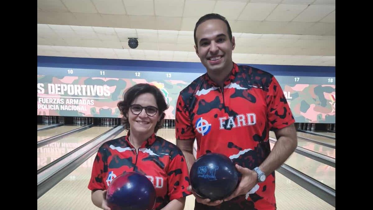 Alejandro Prats y Aumí Guerra lograron la medalla de oro en la competencia de sencillos de boliche en el marco de los 55 Juegos Militares y de la Policía Nacional que se celebra en el Sebelén Bowling Center.