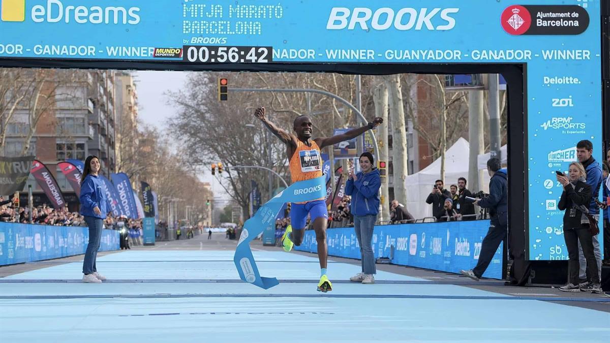 El ugandés Jacob Kiplimo batió este domingo el récord del mundo de medio maratón al acabar el de Barcelona con un tiempo oficial de 56 minutos y 42 segundos y superó así la marca establecida en 2024 por el etíope Yomif Kejelcha en el Medio Maratón de Valencia (57:30).