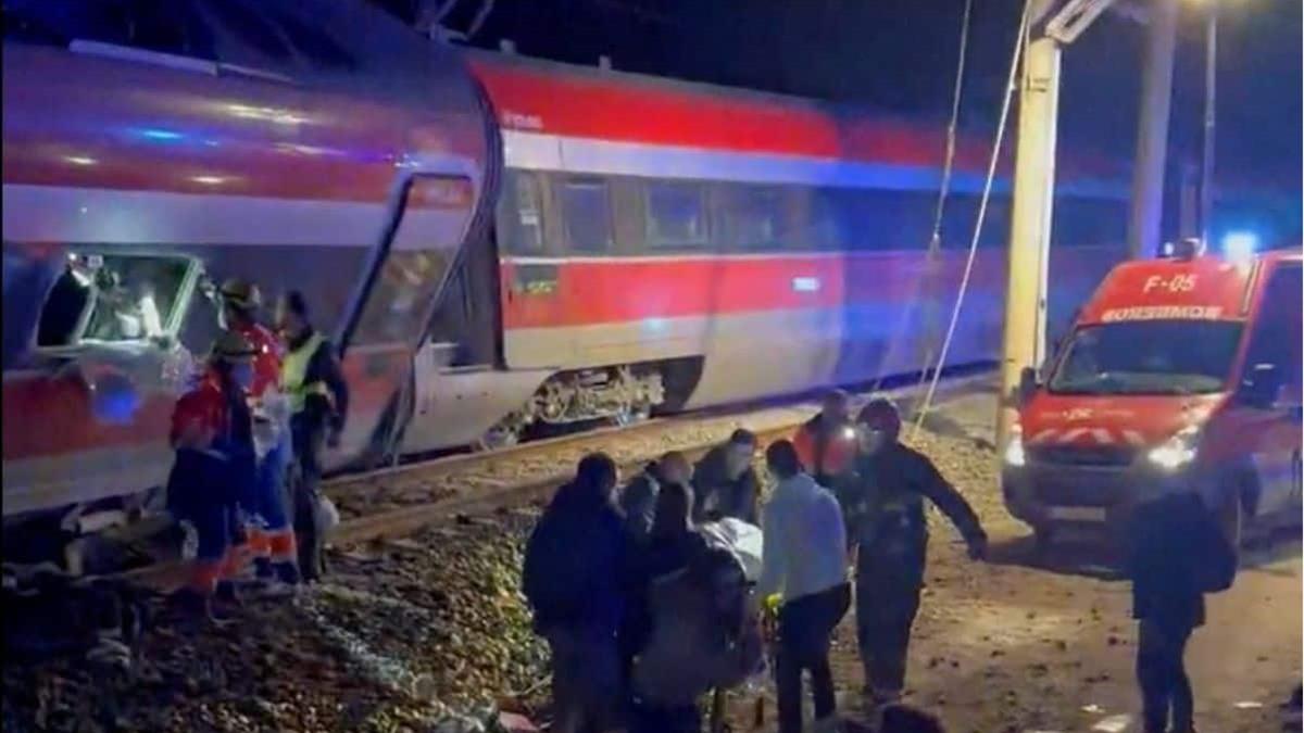 Pasaban las 19.30 horas de este domingo cuando un tren de la empresa Iryo, que había salido de Málaga a las 18.40 horas con destino a Madrid con 317 personas, descarriló sus tres últimos vagones e invadió la vía contigua por la que en ese mismo momento circulaba otro convoy de la compañía Renfe con destino a Huelva.