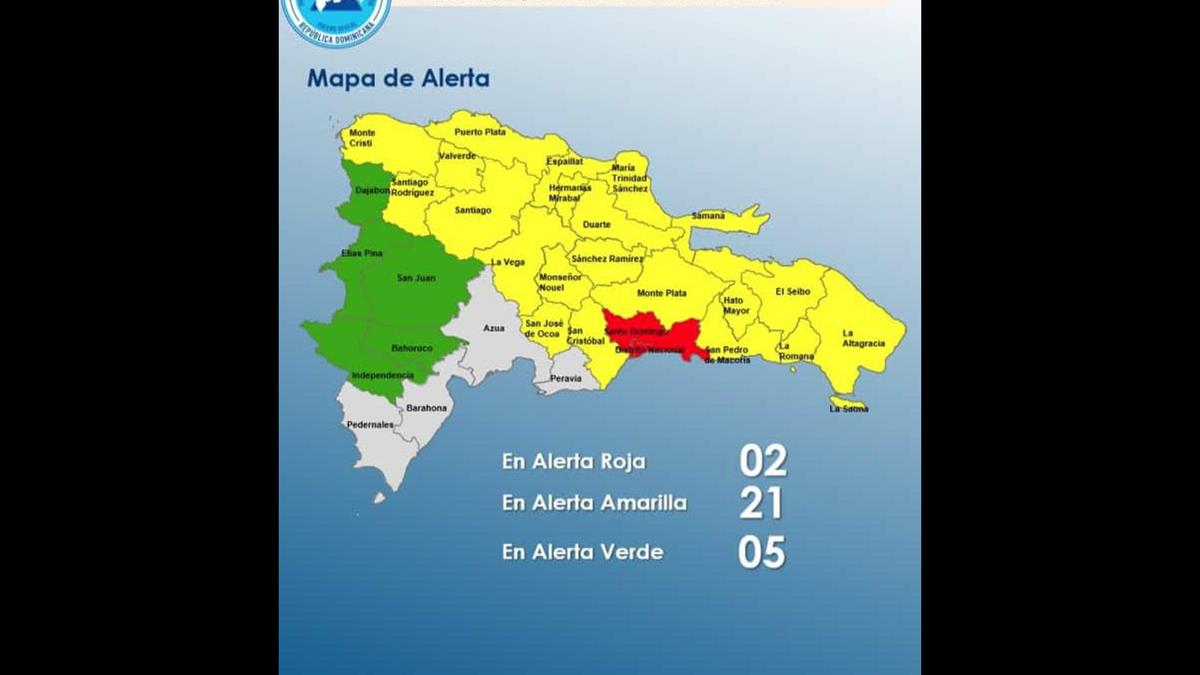 En alerta verde están las provincias San Juan, Dajabón, Independencia, Elías Piña y Bahoruco.