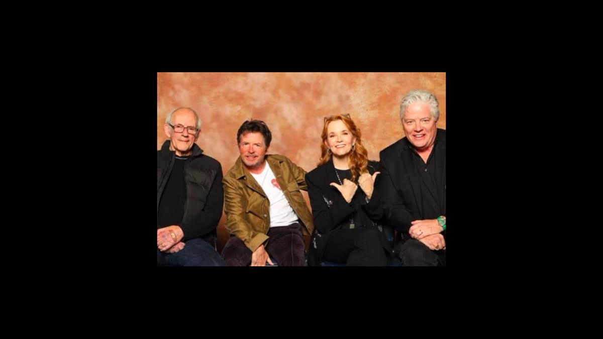 Thompson, quien formó pareja en la ficción con Crispin Glover como Gregory McFly, compartió foto en en su cuenta de Instagram junto con Fox, Lloyd y Wilson.