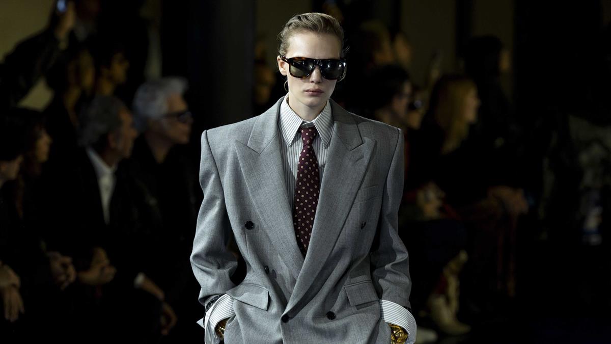 Giorgio Armani, Saint Laurent, Tommy Hilfiger, Brunello Cucinelli o Carlota Barrera proponen para el hombre el traje de chaqueta como uniforme de trabajo: chaqueta cruzada y corte holgado al estilo de los Lobos de Wall Street.