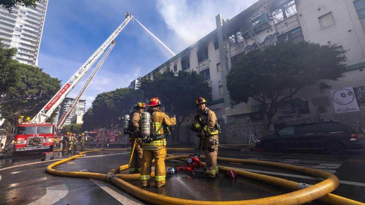 "Mientras los bomberos recorrían el edificio, localizaron a otras tres personas en el tercer piso. Evacuaron a las personas a un lugar seguro mediante escaleras de mano que los equipos desplegaron en las salidas de incendios", agregó LAFD.