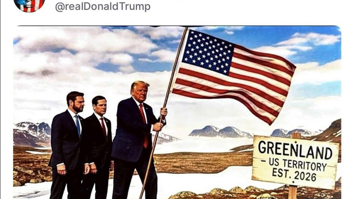 El presidente de EE. UU., Donald Trump, llega al Foro Económico de Davos con la anexión de Groenlandia como principal objetivo. Una foto generada por inteligencia artificial muestra en sus redes a la isla ya como estadounidense, y sus distintos mensajes insisten en que es imperativo que Washington se haga con su control.