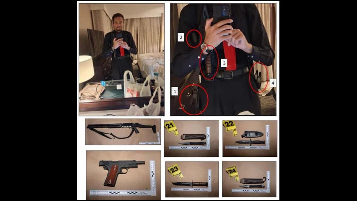 Según los fiscales, al llegar a la habitación del Hilton, Allen escribió sorprendido por lo que consideraba la escasa seguridad del hotel. Dijo que había entrado "con múltiples armas y ni una sola persona aquí contempla la posibilidad de que yo pueda ser una amenaza".