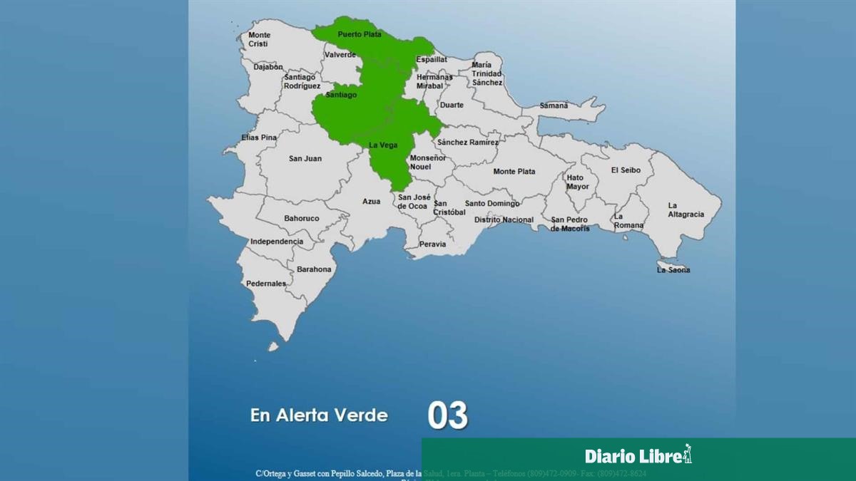 El Centro de Operaciones de Emergencias (COE) emitió la tarde de este viernes alerta verde para las provincias Santiago, La Vega y Puerto Plata, por las posibles crecidas de ríos, arroyos y cañadas, así como inundaciones repentinas, tanto rurales como urbanas que podrían ocasionar las lluvias moderadas y fuertes a consecuencia de una vaguada prefrontal.