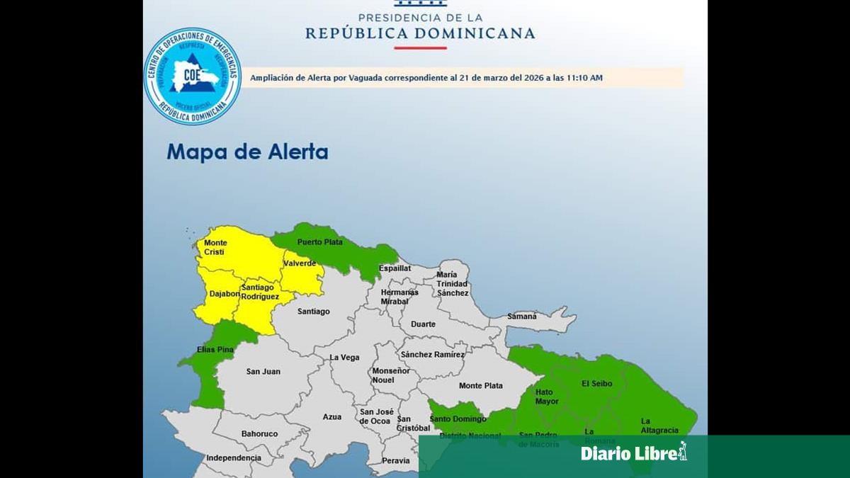 En tanto, permanecen en alerta verde Puerto Plata, San Pedro de Macorís, La Romana, Elías Piña, El Seibo, Hato Mayor, el Distrito Nacional, la provincia Santo Domingo y La Altagracia.