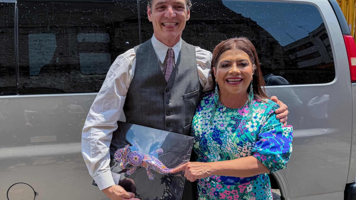 Pedro Pascal recibe un regalo de la alcaldesa de Ciudad de México durante filmación