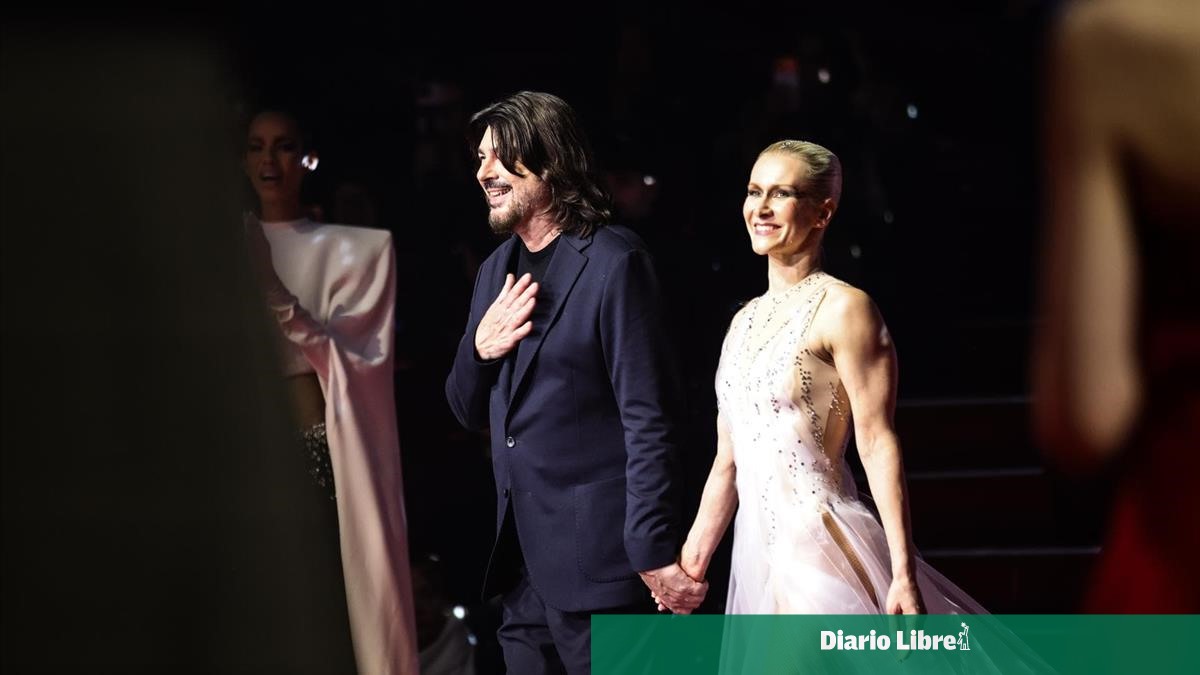 La española Nieves Álvarez no solo ha abierto el desfile, sino que también ha pasado con otro 'look', en este caso completamente negro, hacia el final, poco antes de que una bailarina profesional saliera del foso del escenario del circo y realizara una arriesgada actuación con ayuda de una grúa.